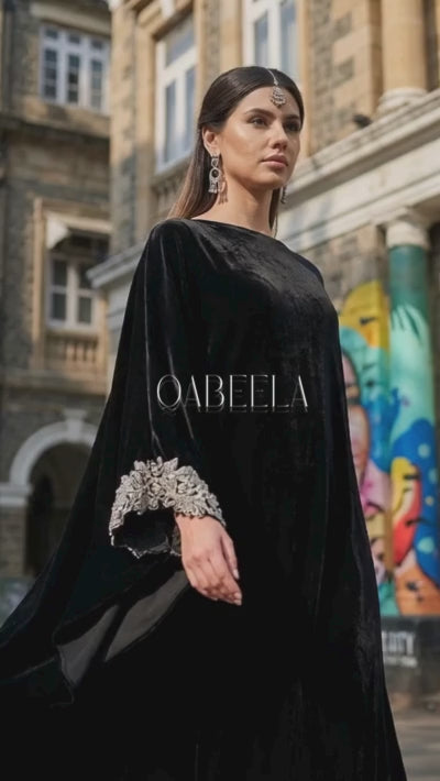 RAM25 ELISE RED DEVORÉ ABAYA PALAZZO SET