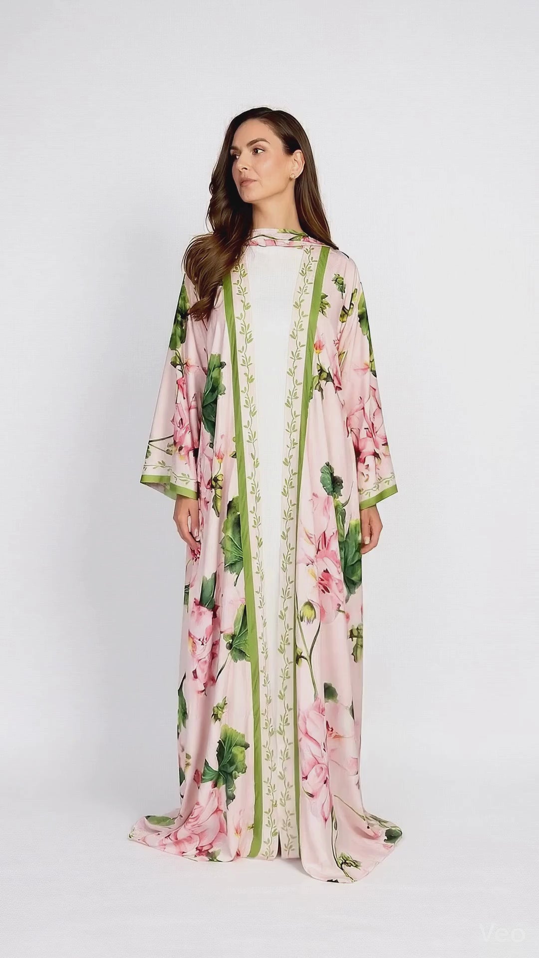 Elevate your wardrobe with this floral printed crepe abaya, designed for effortless elegance and everyday sophistication. Crafted from lightweight, flowy fabric, this abaya features a stunning all-over floral print in rich shades of pink, red, and neutrals, creating a feminine and timeless look.The front and sleeves bottom has detailed patterned boarder that adds a refined touch. Paired with a perfectly coordinated matching sheila, this set offers a complete outfit suitable for casual wear, gatherings, or special occasions.