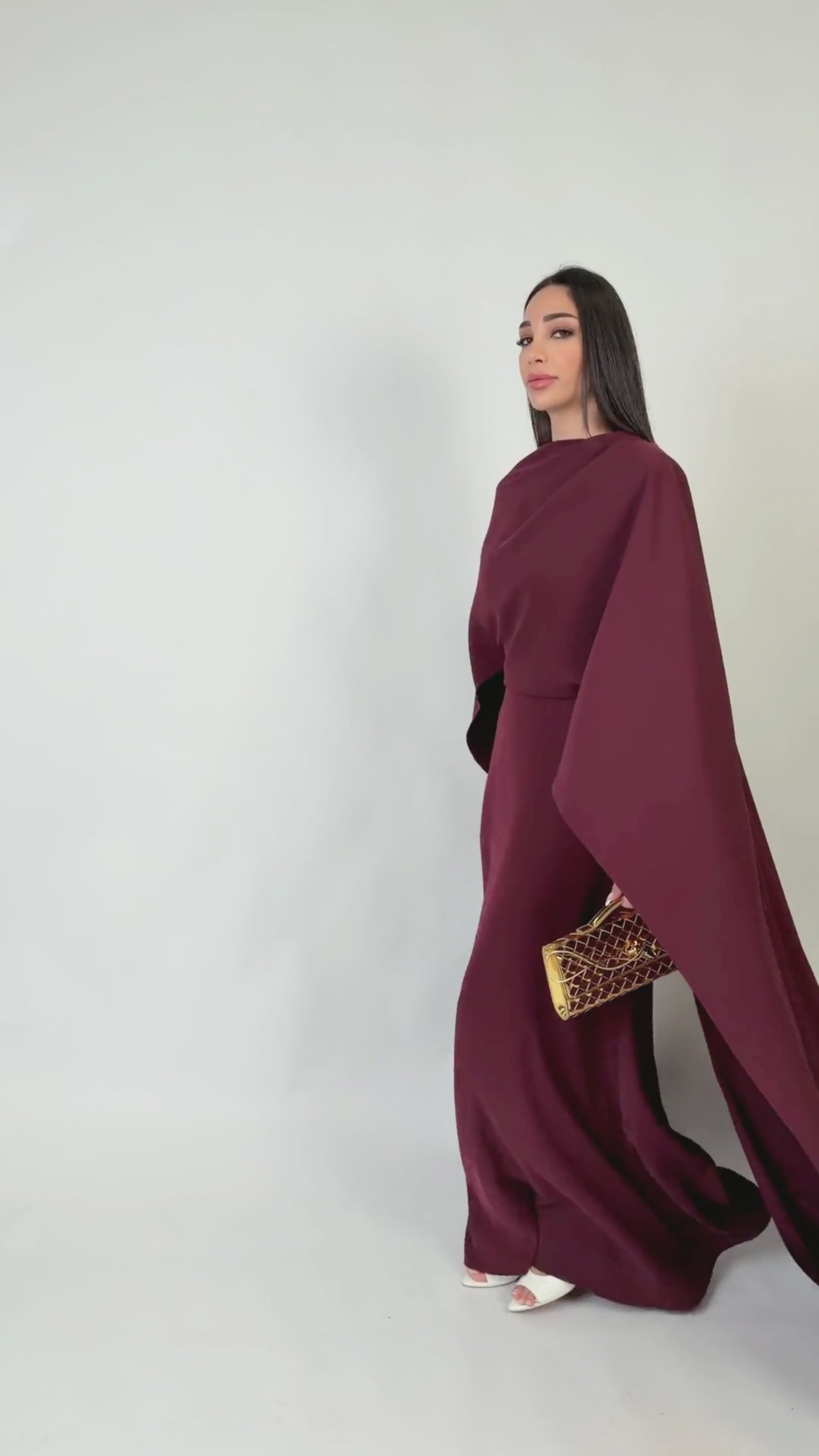 Exude timeless elegace with this stunning burgundy dress. The soft crepe fabric falls beautifully with drape on the shoulder that adds a luxurious touch, creating refined look from every agle. Perfect for formal occasions and special celebrations.